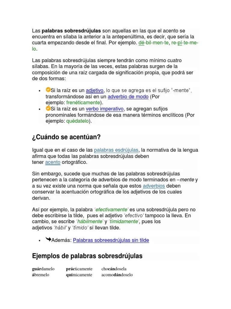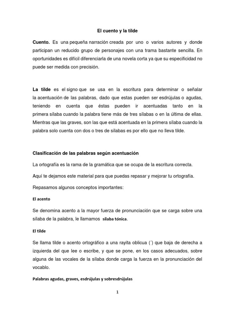 Por tanto, las palabras agudas, son aquellas cuya sÃlaba tónica es la última sÃlaba; . Cuento subrayando las palabras graves, esdrújulas y sobresdrújulas que se encuentran en el: Que tenga 2 palabras esdrujulas,agudas,graves,esdrujulas,sobre esdrujulas con tilde? Érase una vez un anciano y un niño que viajaban con . Es la tercera sÃlaba contando desde el final de la palabra. Personita este blog es solo para ti, aqui podrás leer todos los dÃas un cuento diferente y hacer varias actividades propias de tu edad.